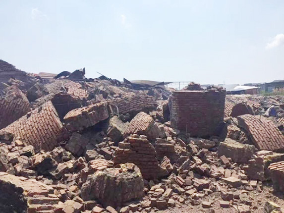 林军轮窑厂烟囱爆破后